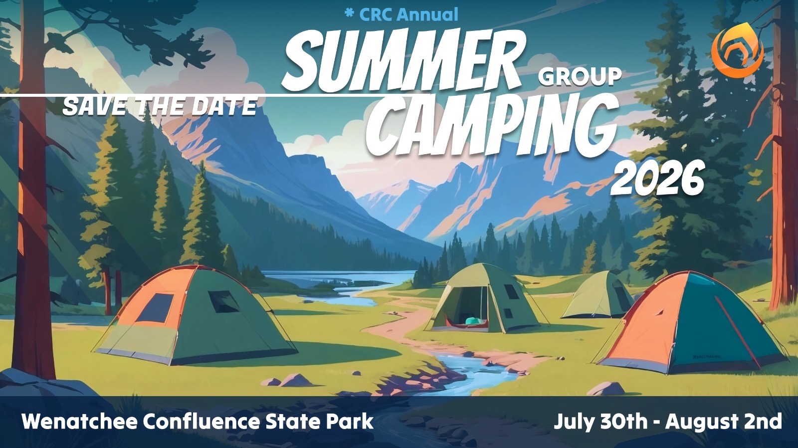 Mark your calendars! CRC Annual Summer Group Camping is happening July 30th–August 2nd, 2026 at Wenatchee Confluence State Park.